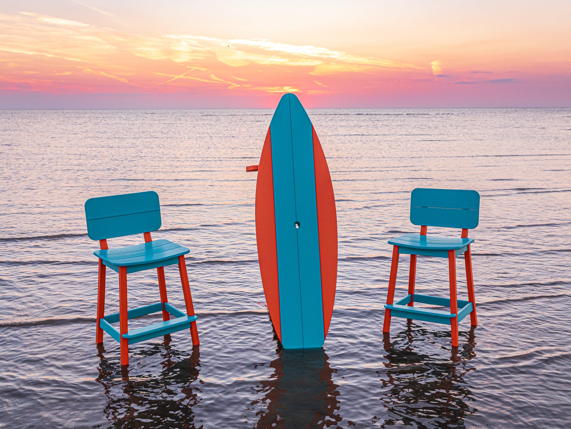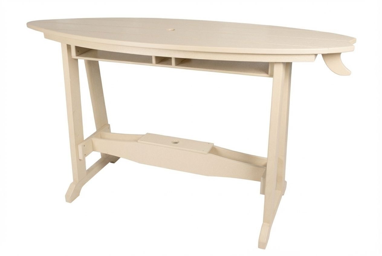 The original poly surf board table by Beaver Dam. Made to comfortably seat 4 with a narrow table design for compact outdoor spaces.