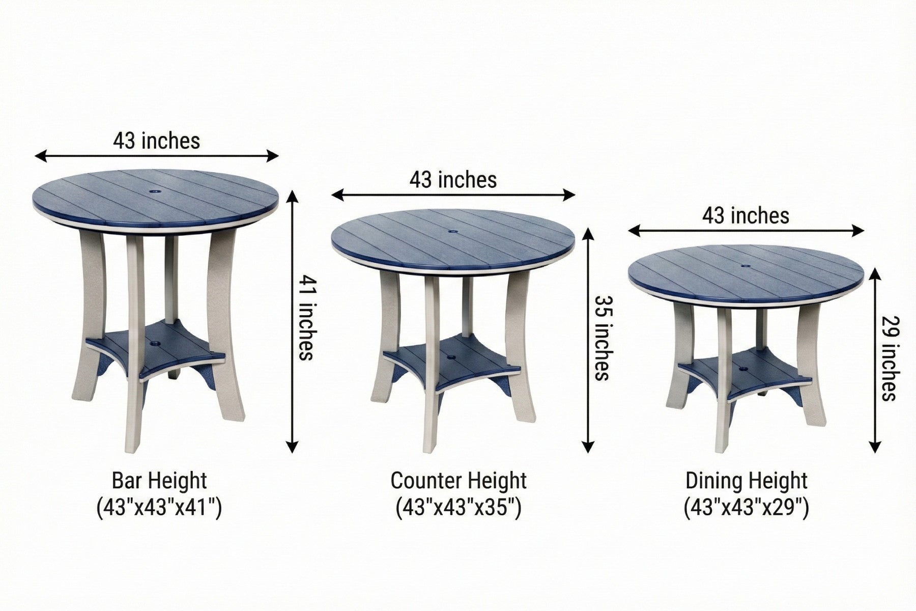- Dining Height: 43"x43"x29"