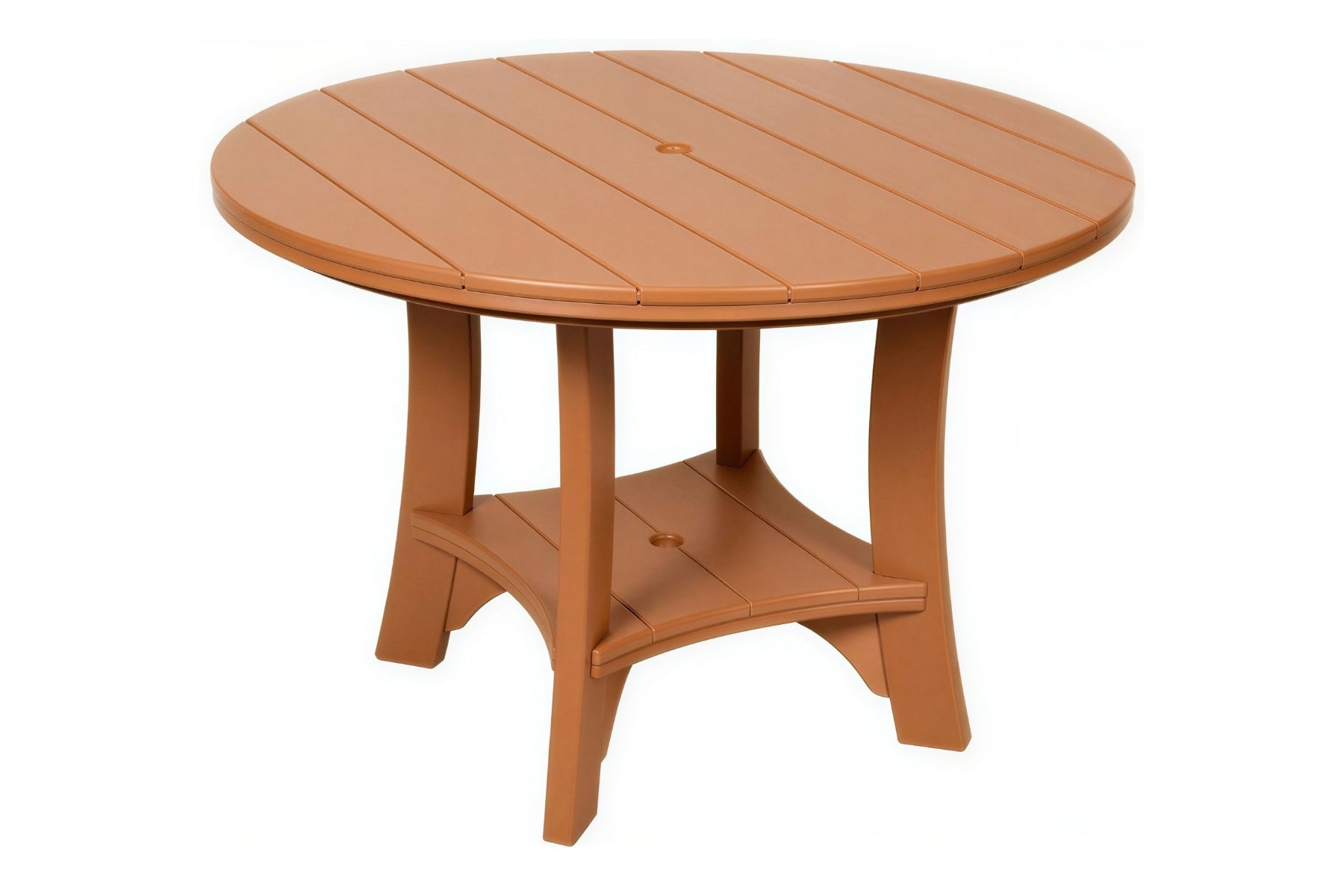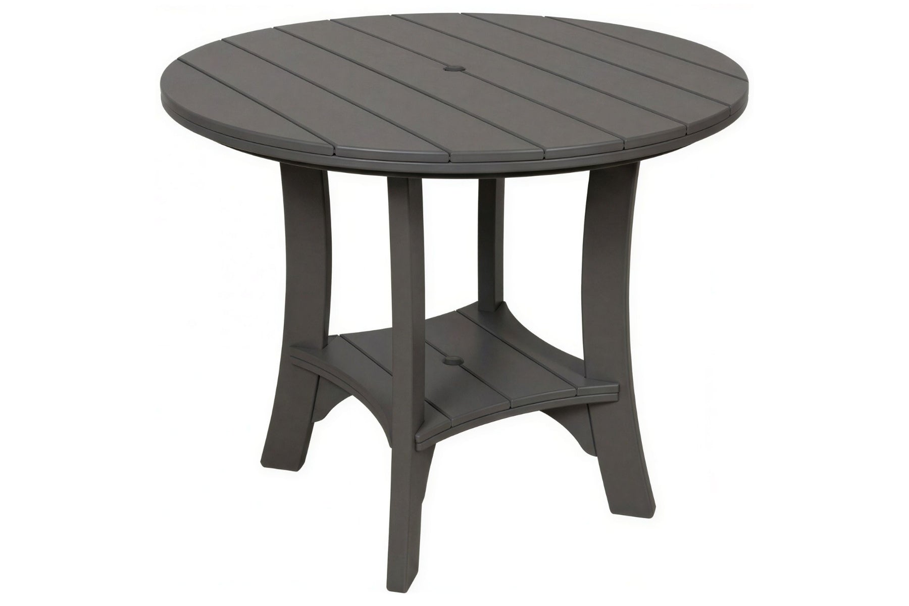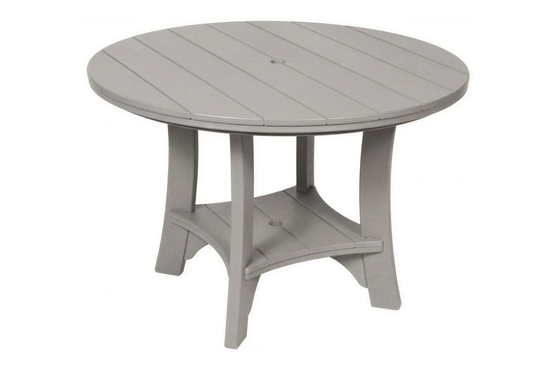 The 43" Serenity Round Table is the perfect middle sized table. It has a compact footprint yet bountiful table space. This poly table is big enough to comfortably seat 4 but can accommodate up to 5 in a snug fashion.