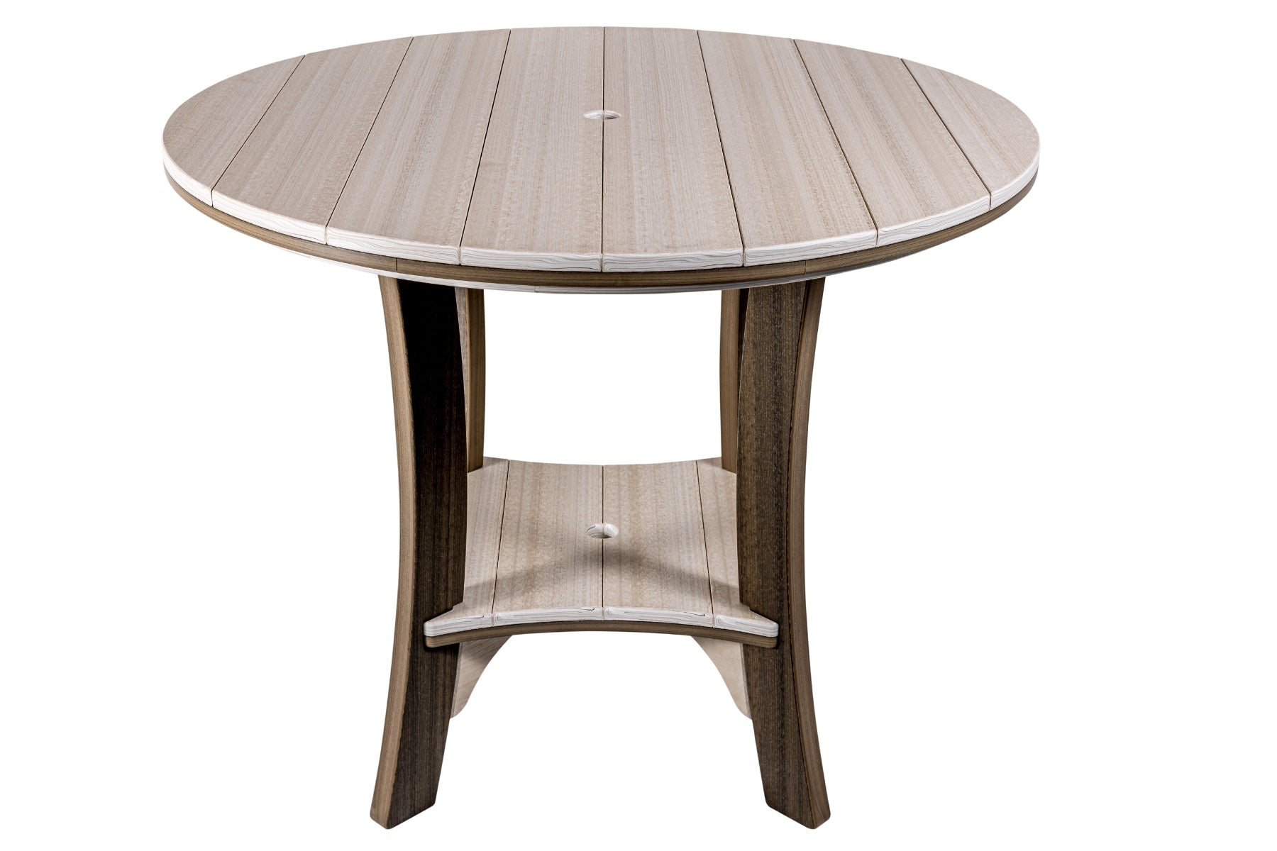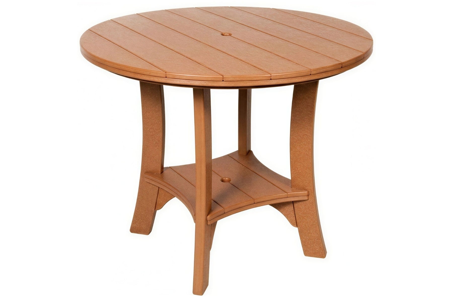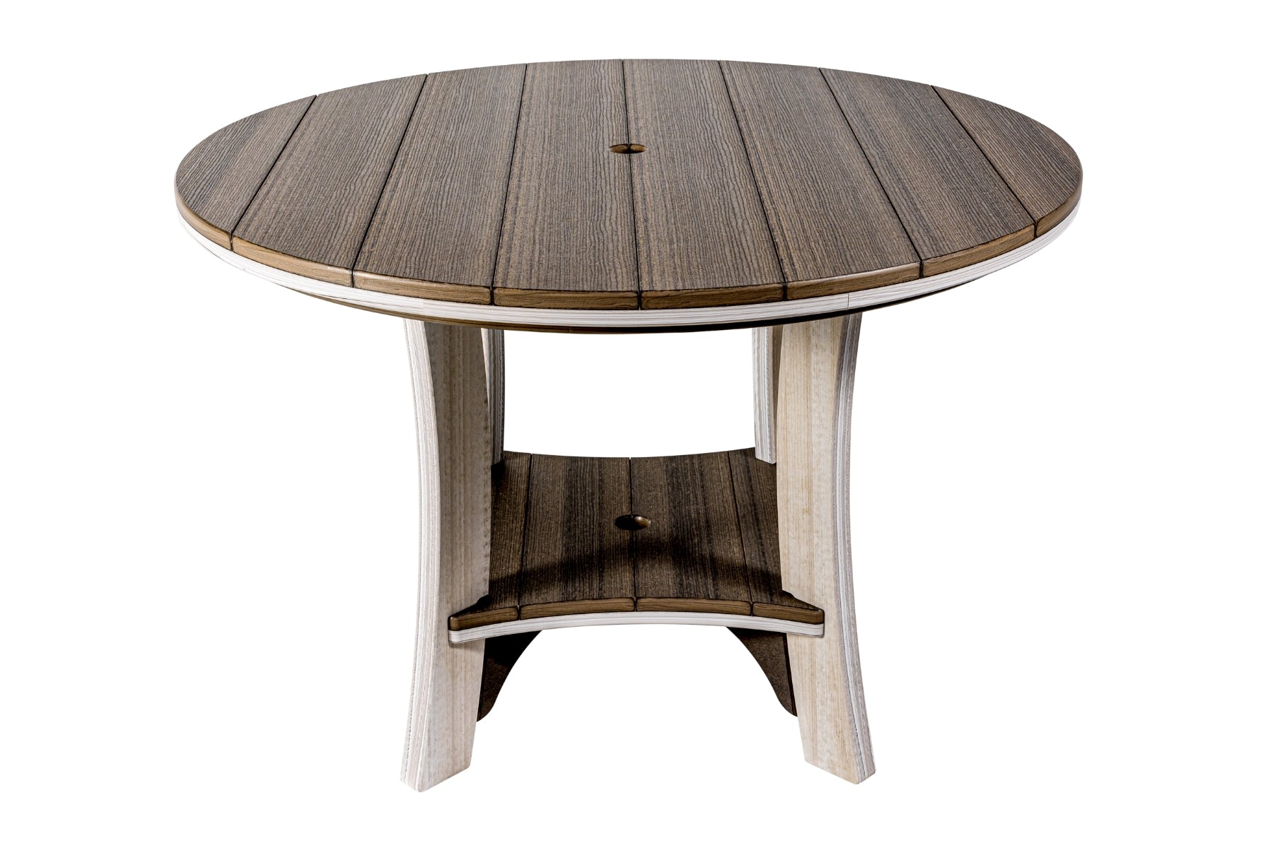 The 43" Serenity Round Table is the perfect middle sized table. It has a compact footprint yet bountiful table space. This poly table is big enough to comfortably seat 4 but can accommodate up to 5 in a snug fashion.