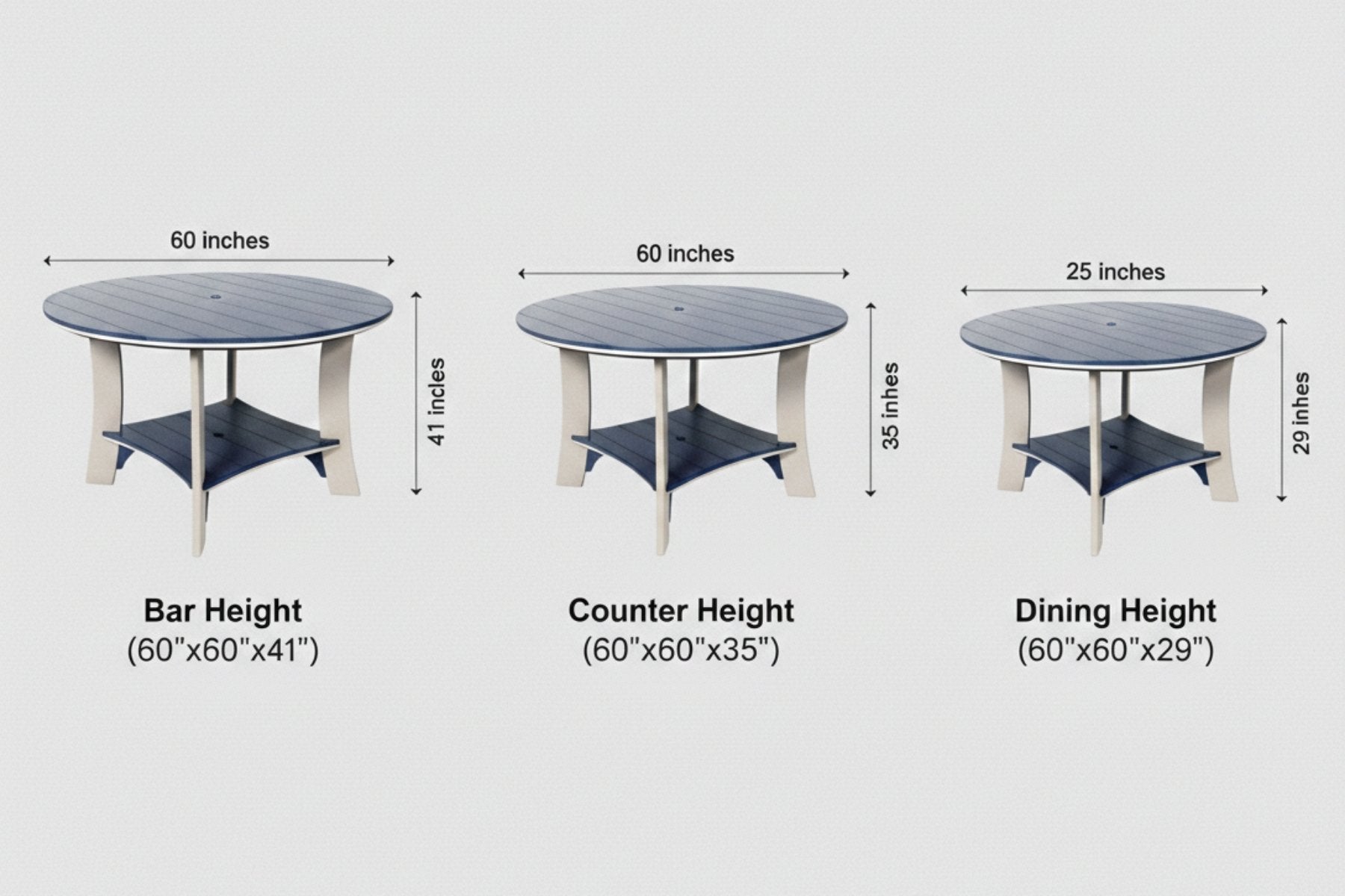 - Counter Height: 60"x60"x35"