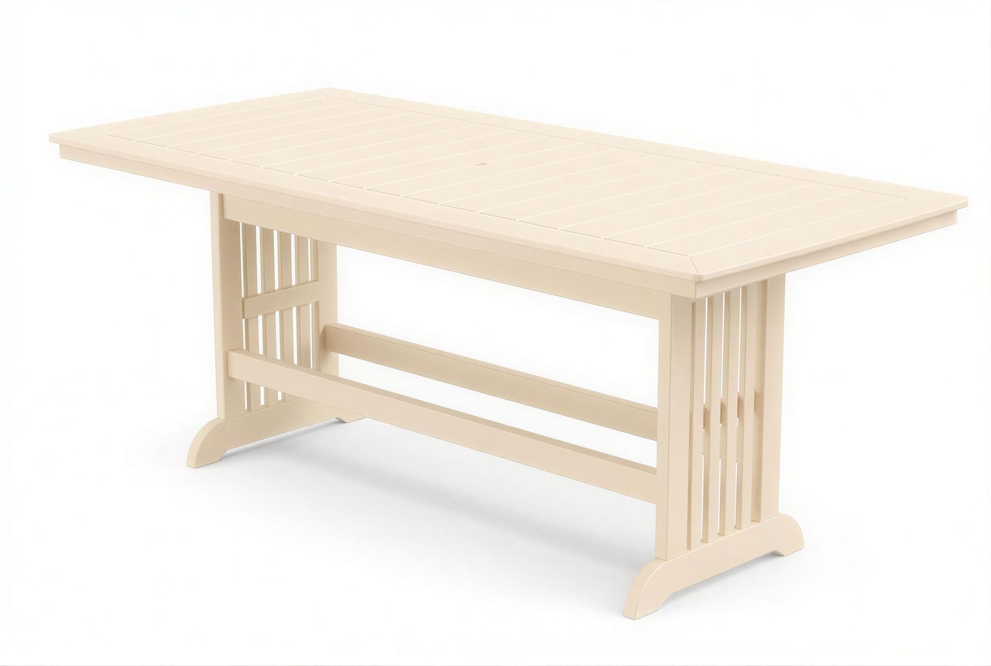 The Poly Farmhouse Mission Table by Beaver Dam combines is the perfect anchor to any premium outdoor living space. Choose from five versatile sizes and three custom heights to create the perfect centerpiece no matter how many people gather 'round.