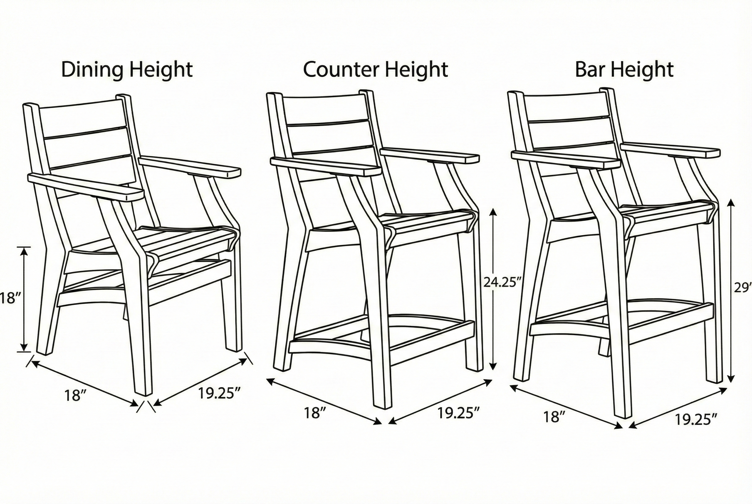 - Dining Height: 18"x19.25"x18"