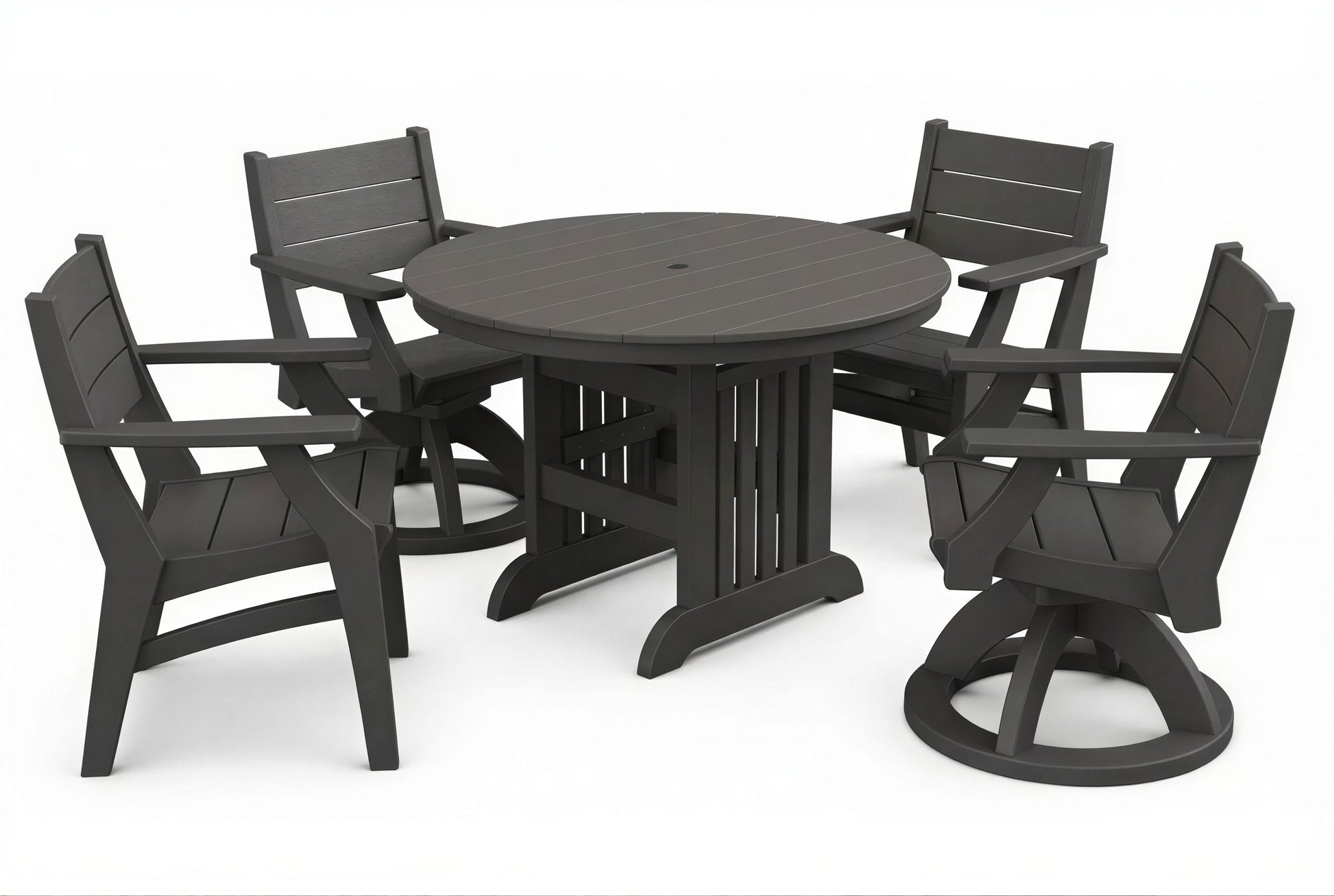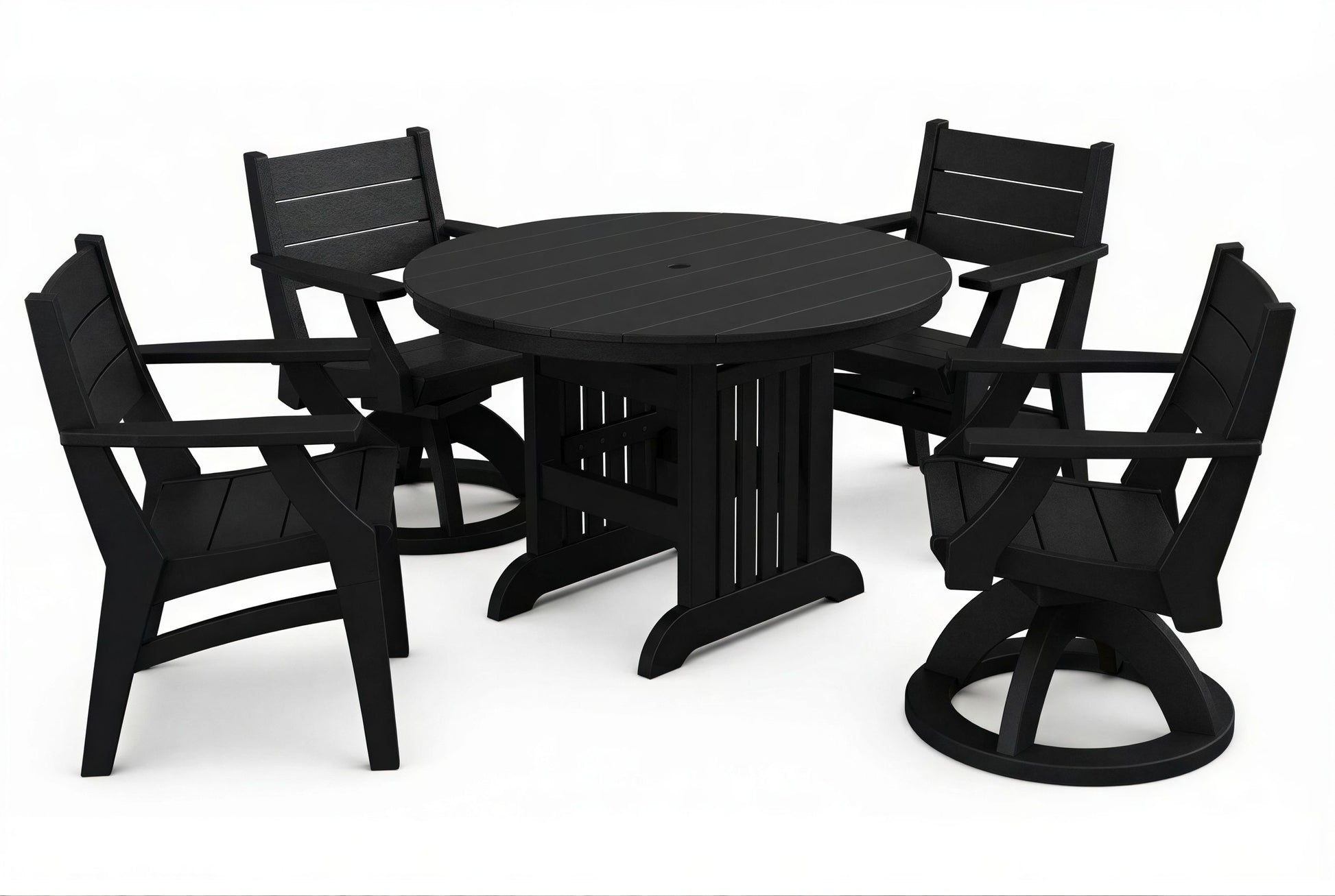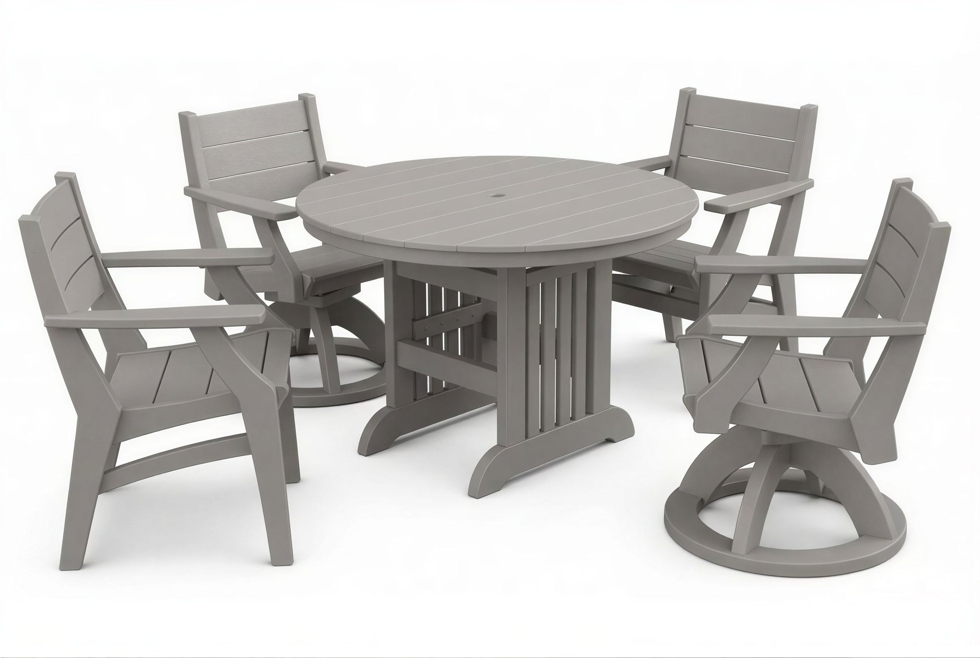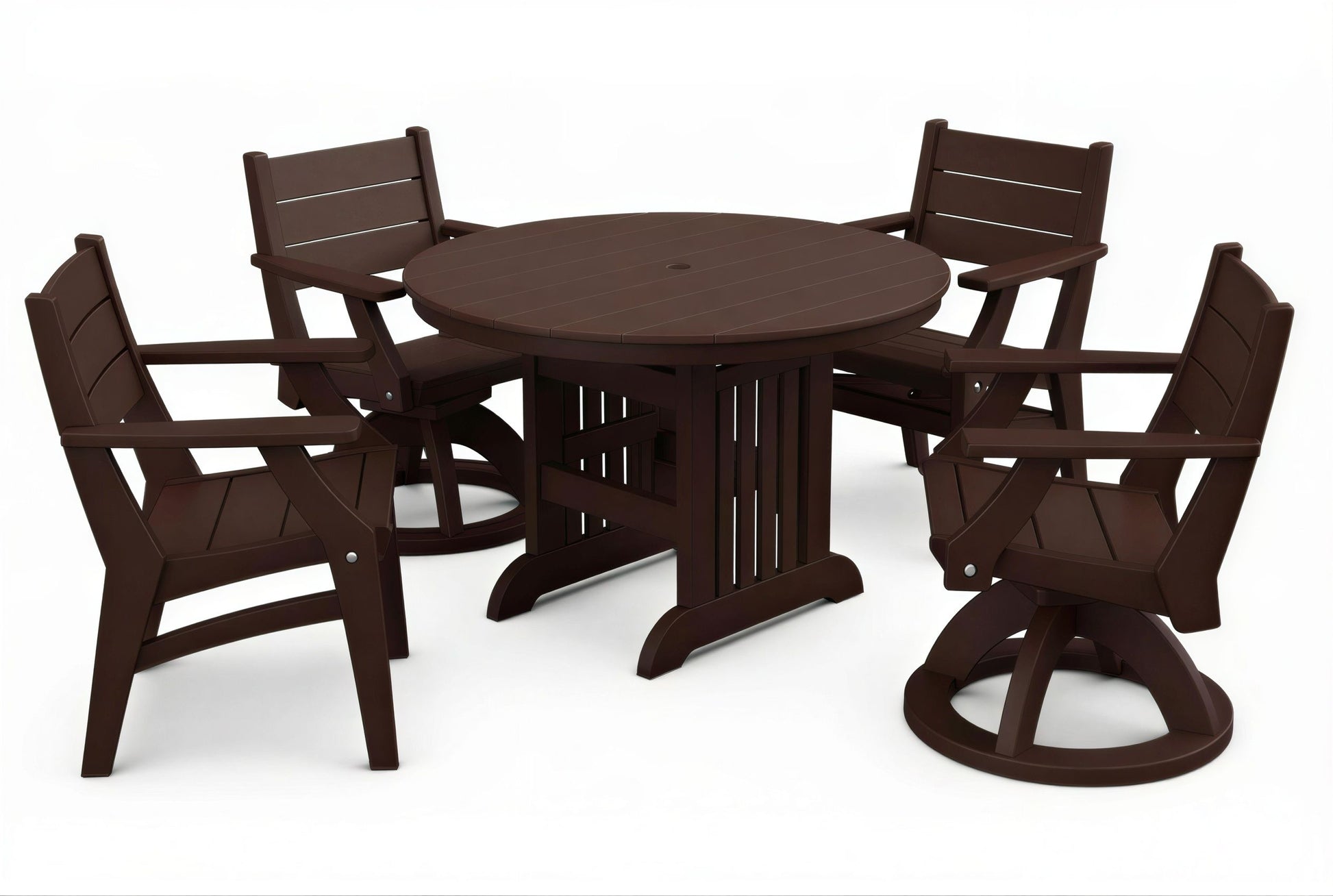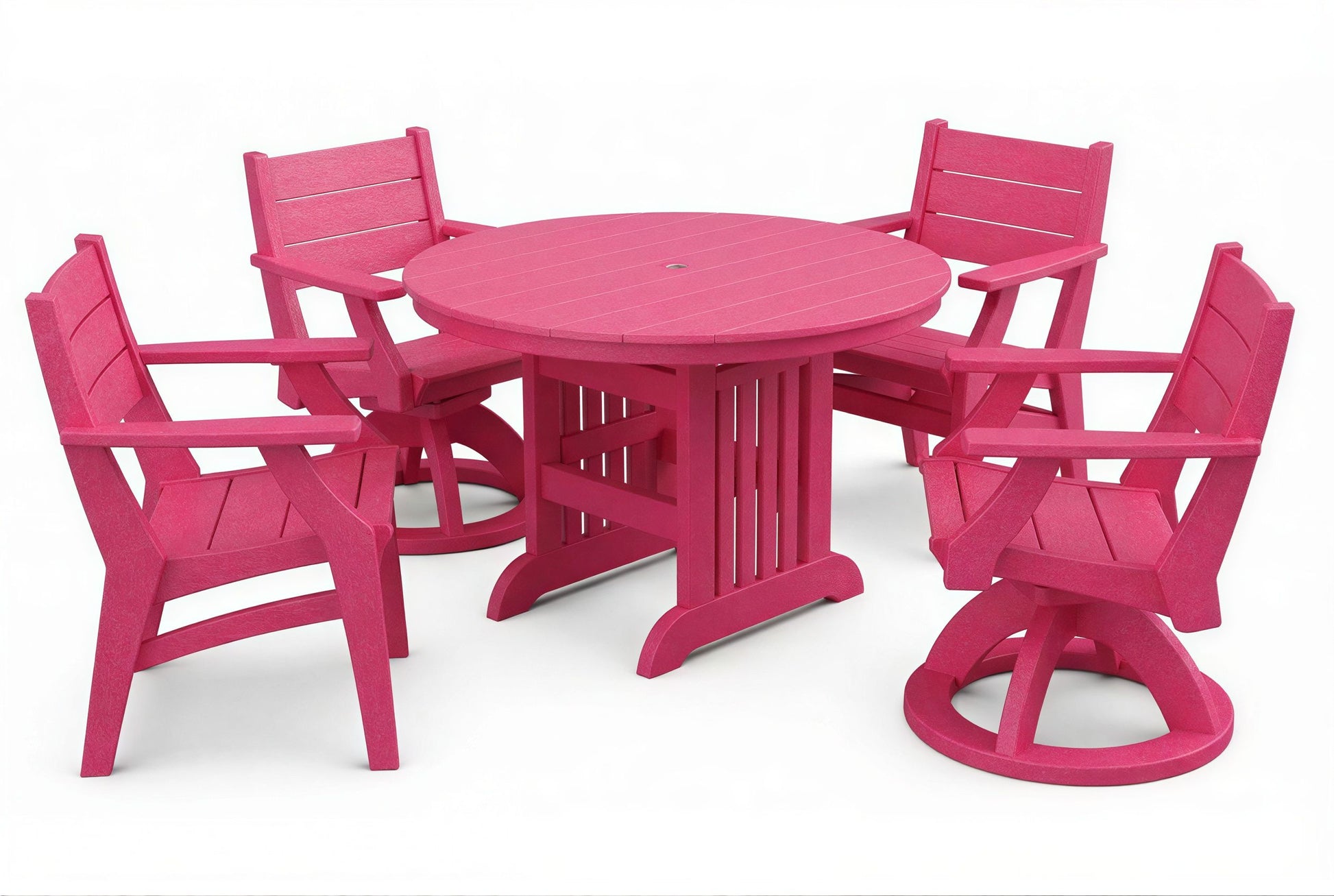 The 44" Mission Round Table & Chairs Set by Beaver Dam brings a timeless, craftsman-inspired aesthetic to your outdoor living area with its clean lines and sturdy profile. This durable set provides a spacious dining surface and a choice of chairs for your ideal outdoor experience.