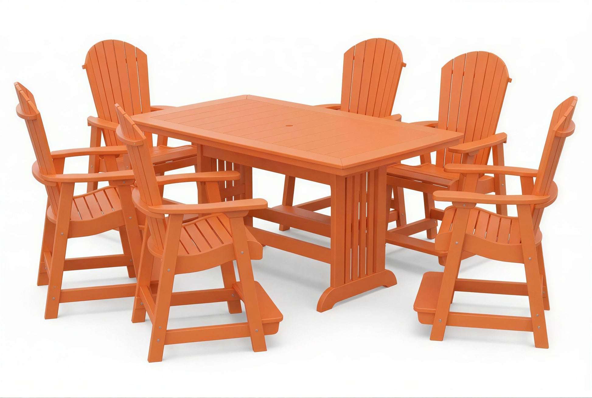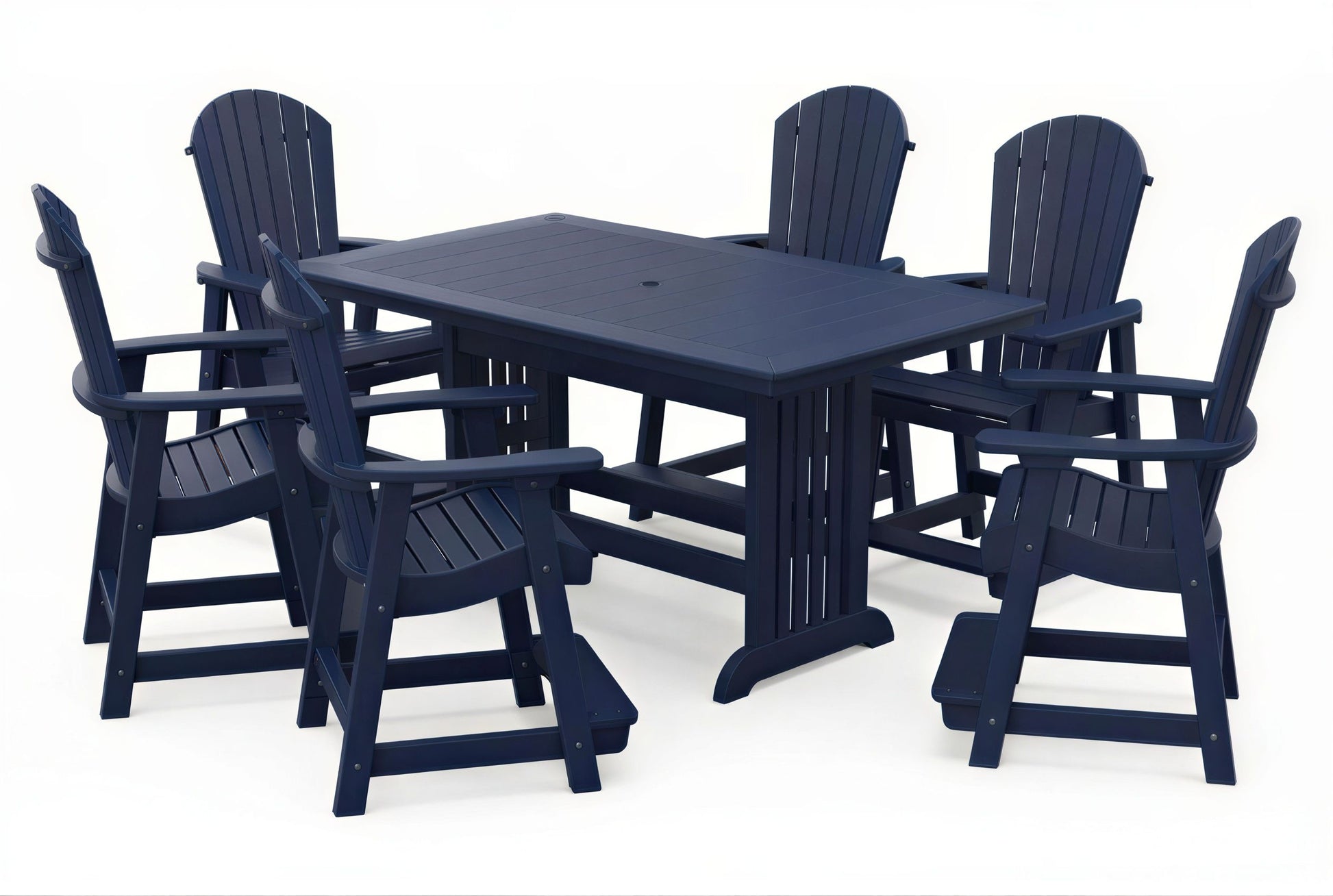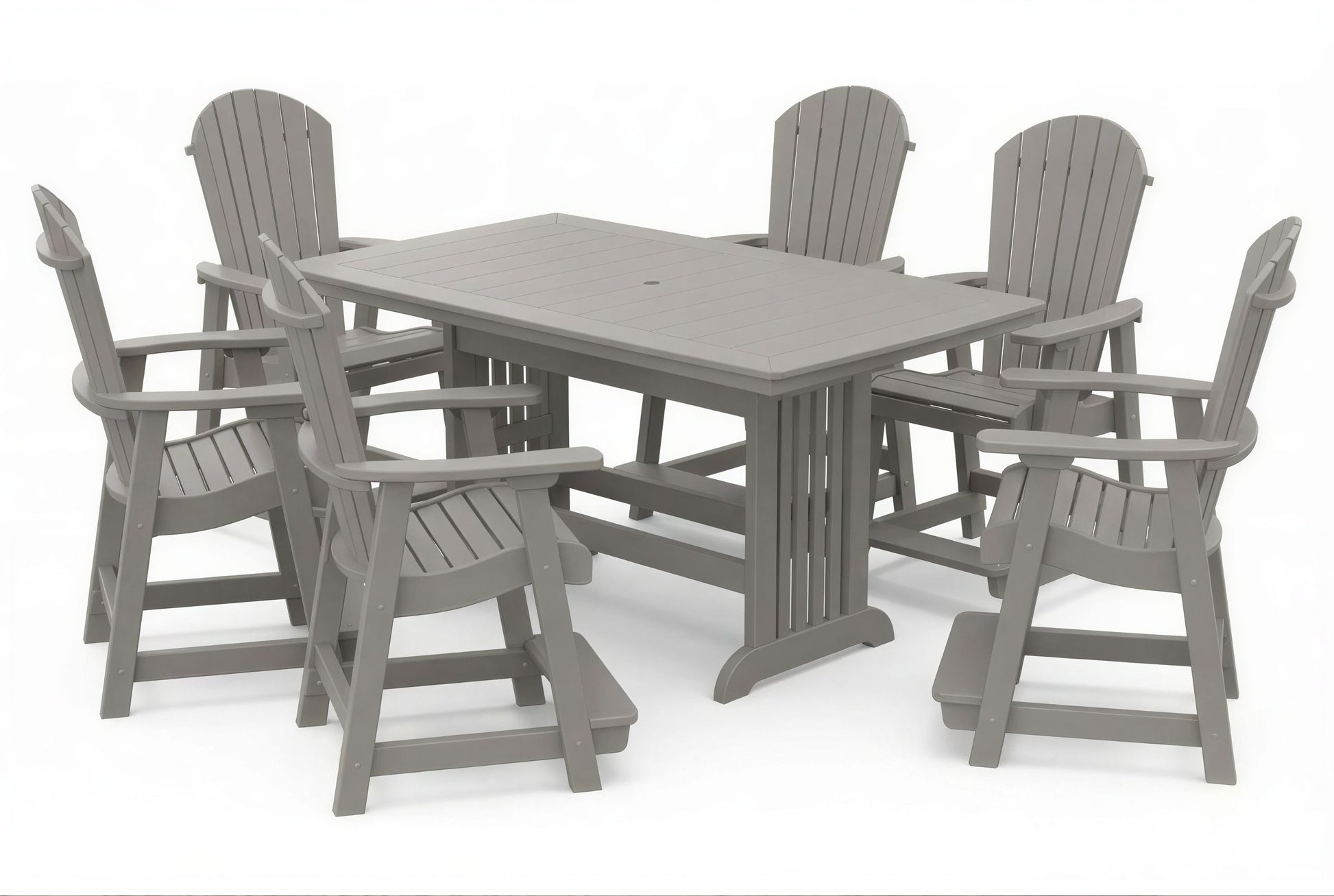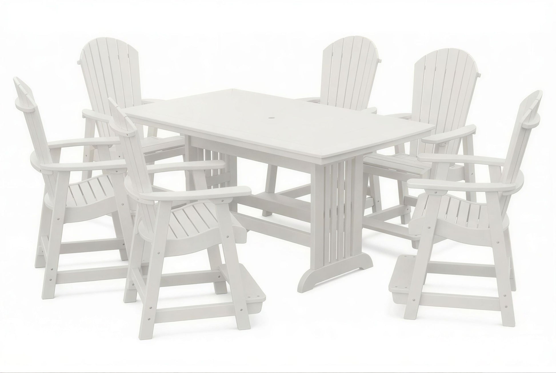 The poly Mission Table & Chairs Set by Beaver Dam pairs the elegant Farmhouse table with robust ergonomically designed Empress chairs to create a coastal-inspired centerpiece for any outdoor living space. Available in both 4-person and 6-person configurations.