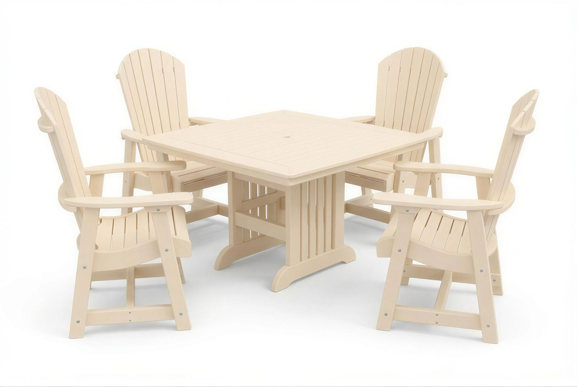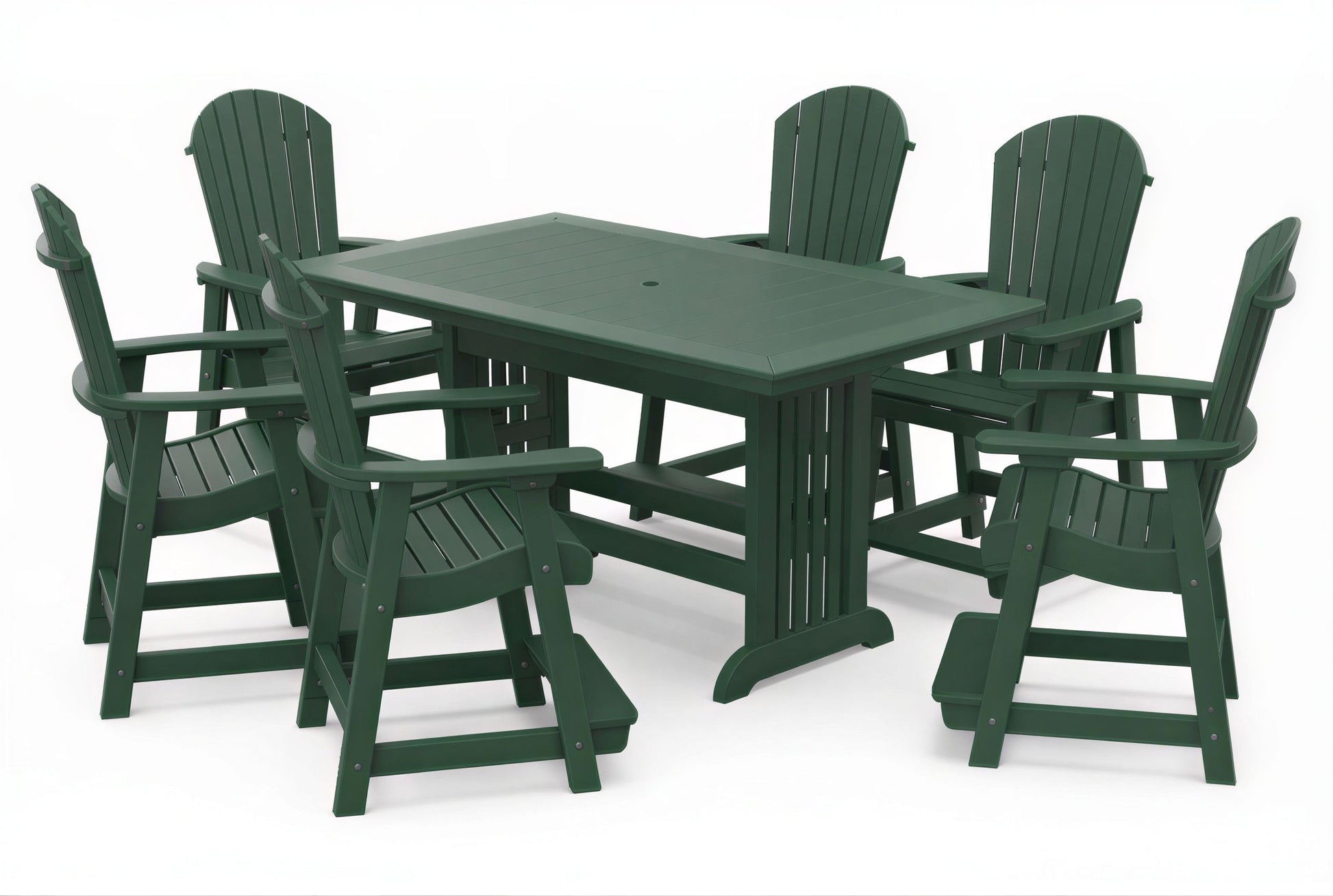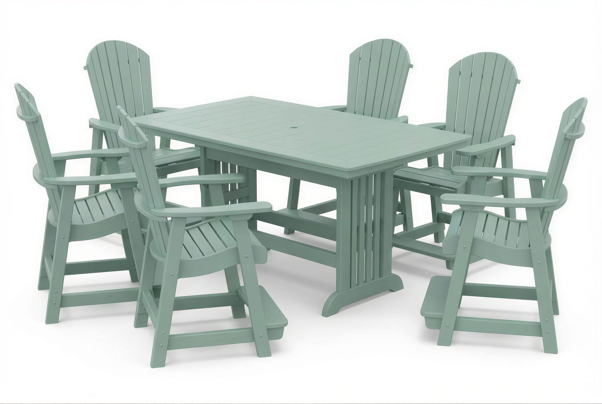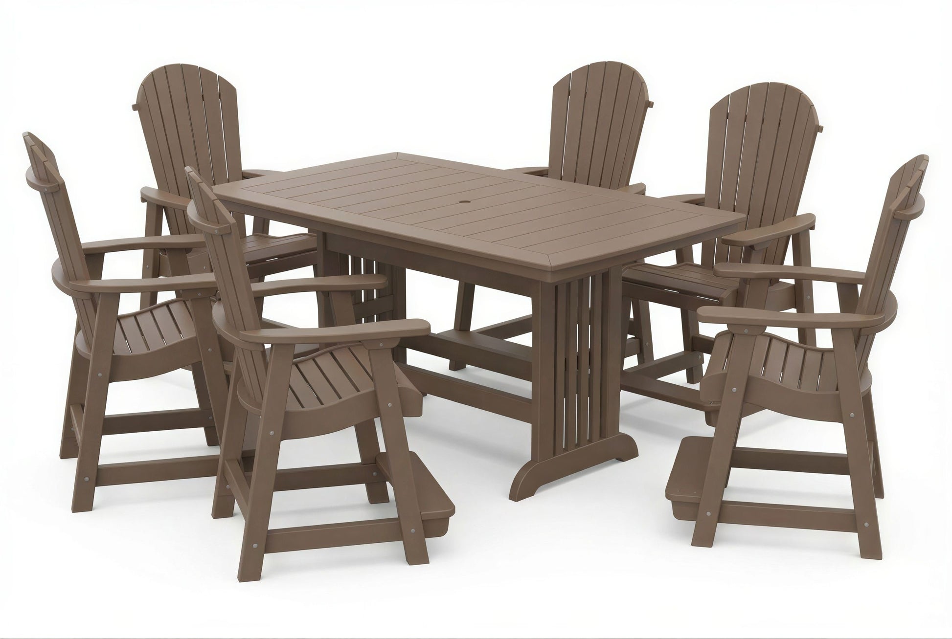 The poly Mission Table & Chairs Set by Beaver Dam pairs the elegant Farmhouse table with robust ergonomically designed Empress chairs to create a coastal-inspired centerpiece for any outdoor living space. Available in both 4-person and 6-person configurations.