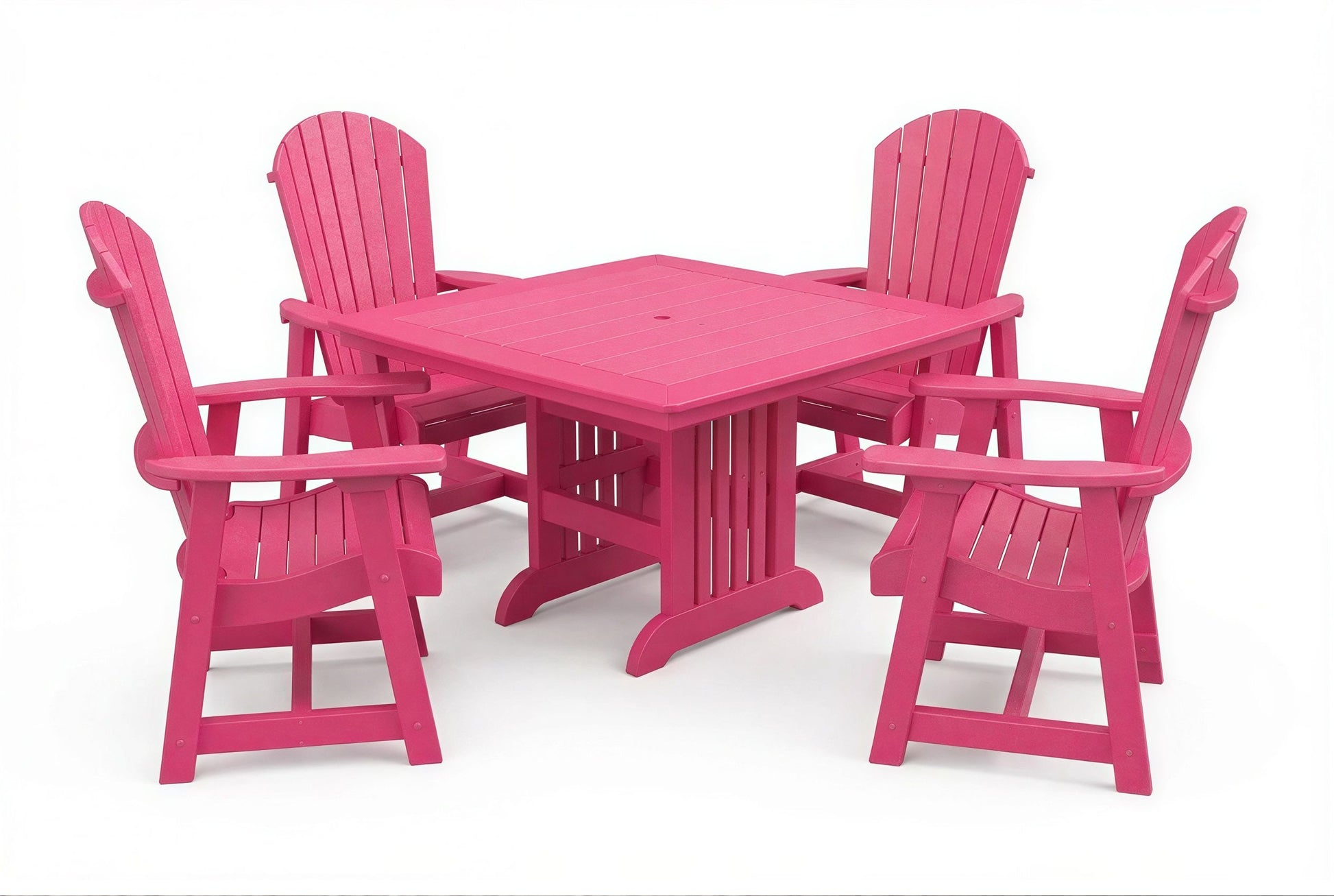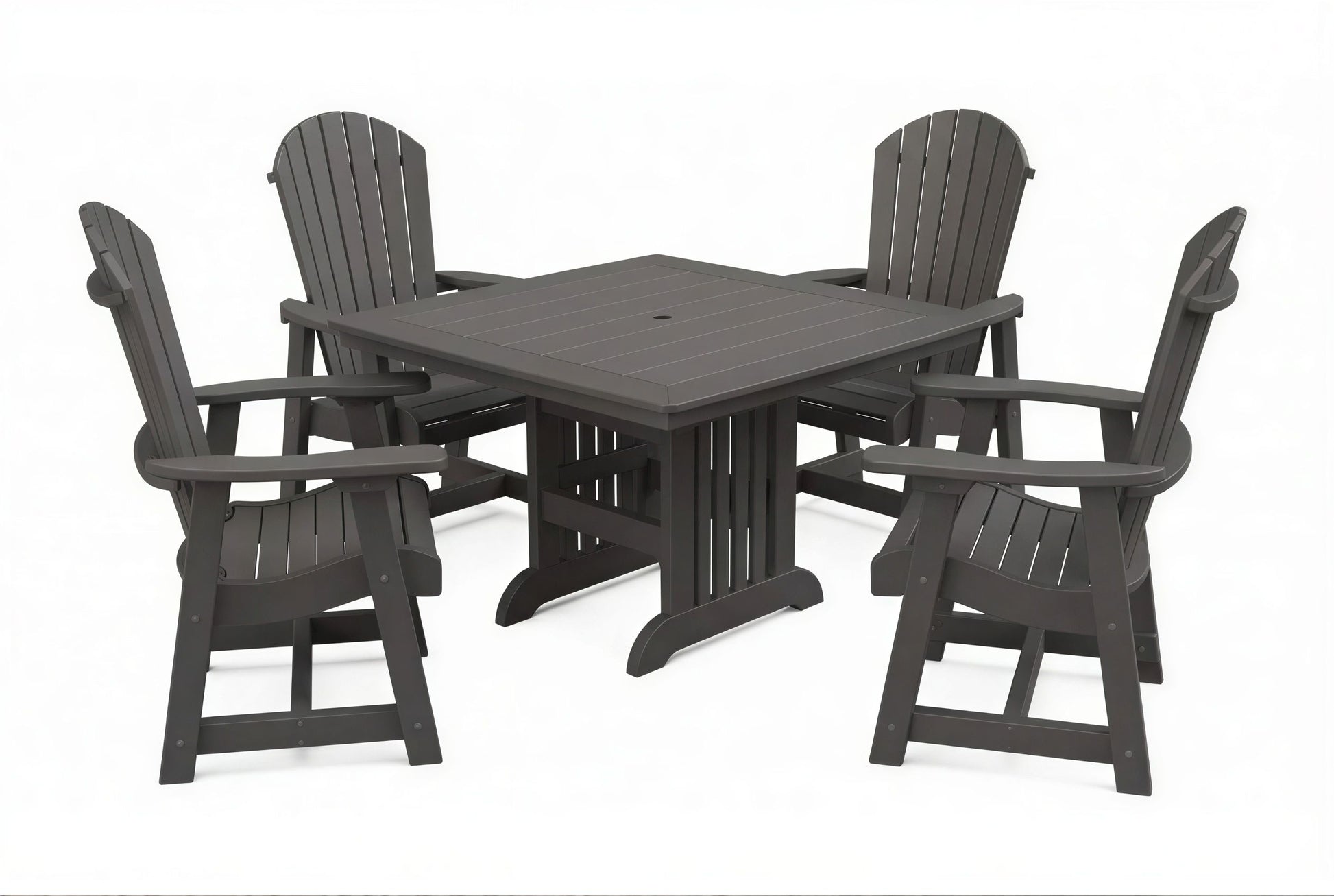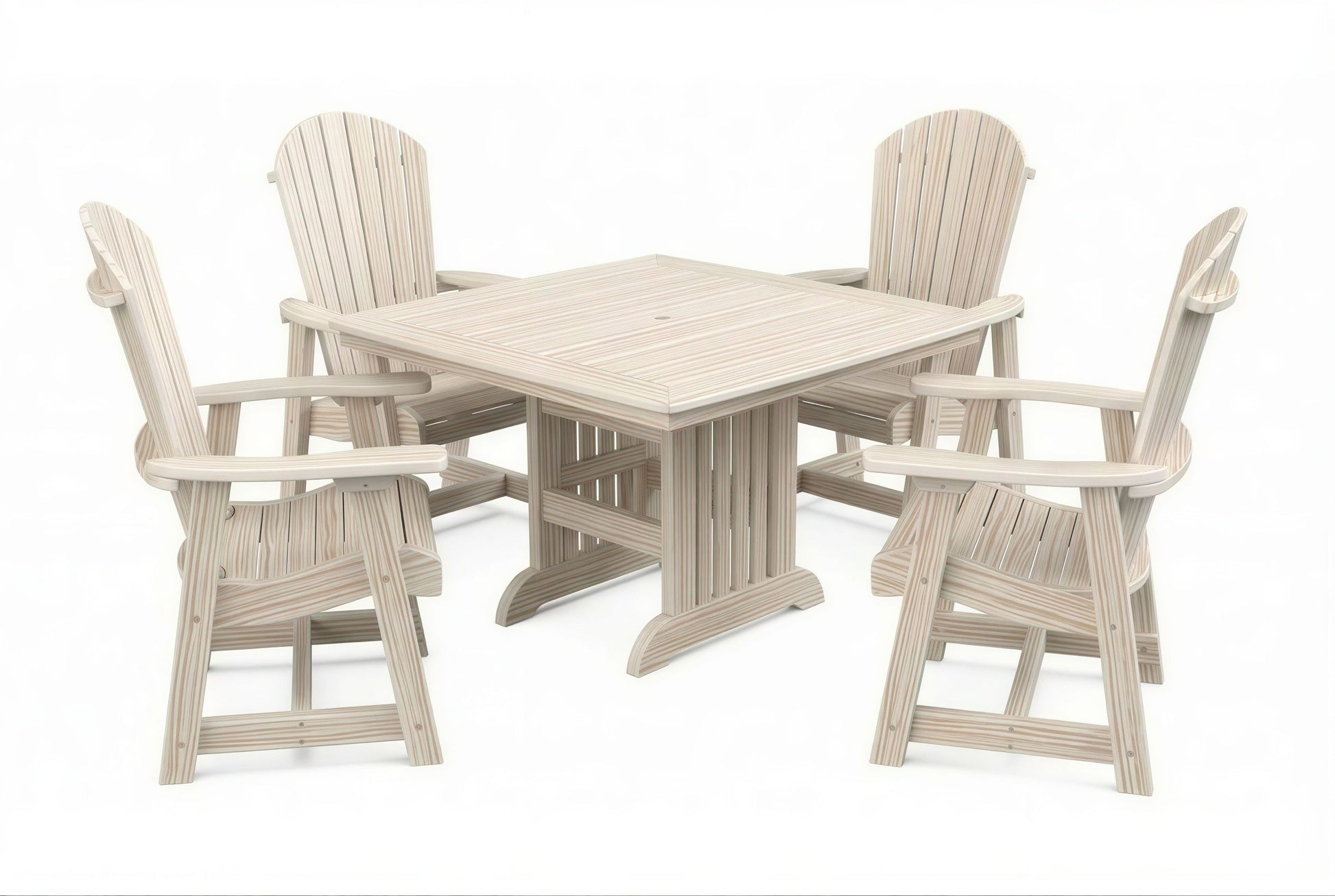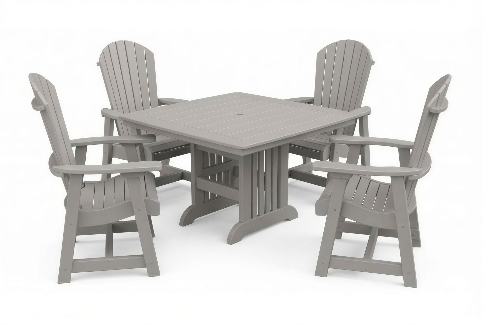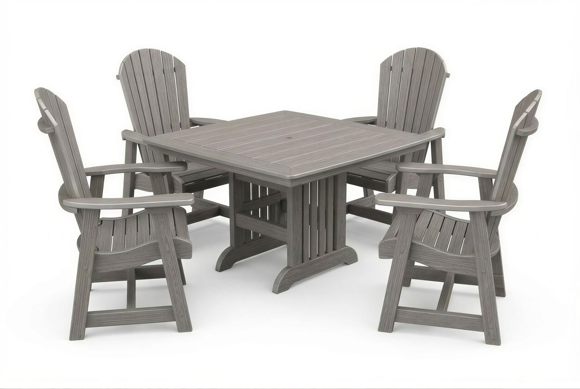 The poly Mission Table & Chairs Set by Beaver Dam pairs the elegant Farmhouse table with robust ergonomically designed Empress chairs to create a coastal-inspired centerpiece for any outdoor living space. Available in both 4-person and 6-person configurations.
