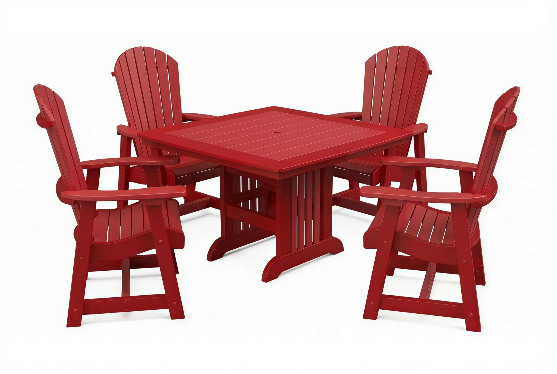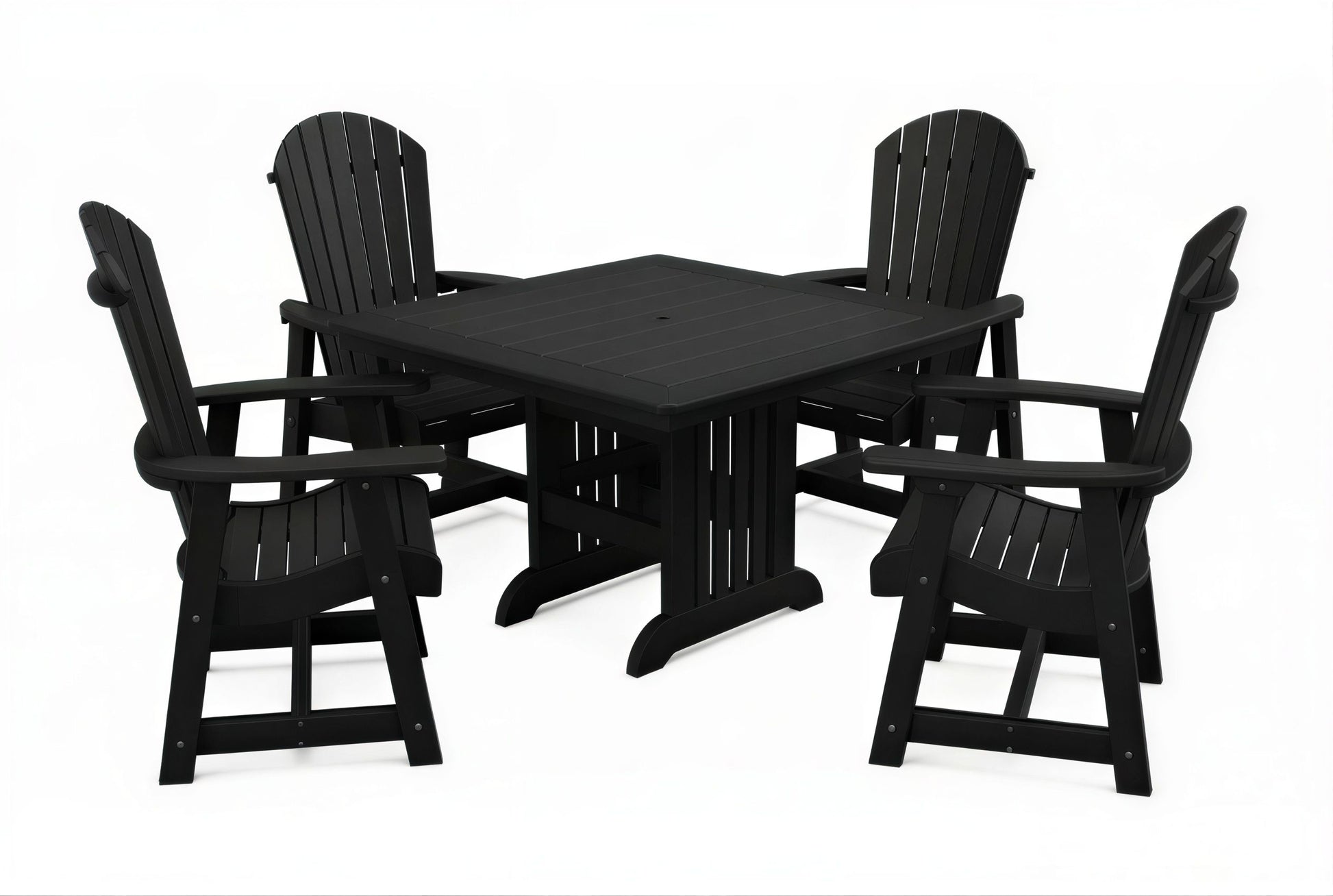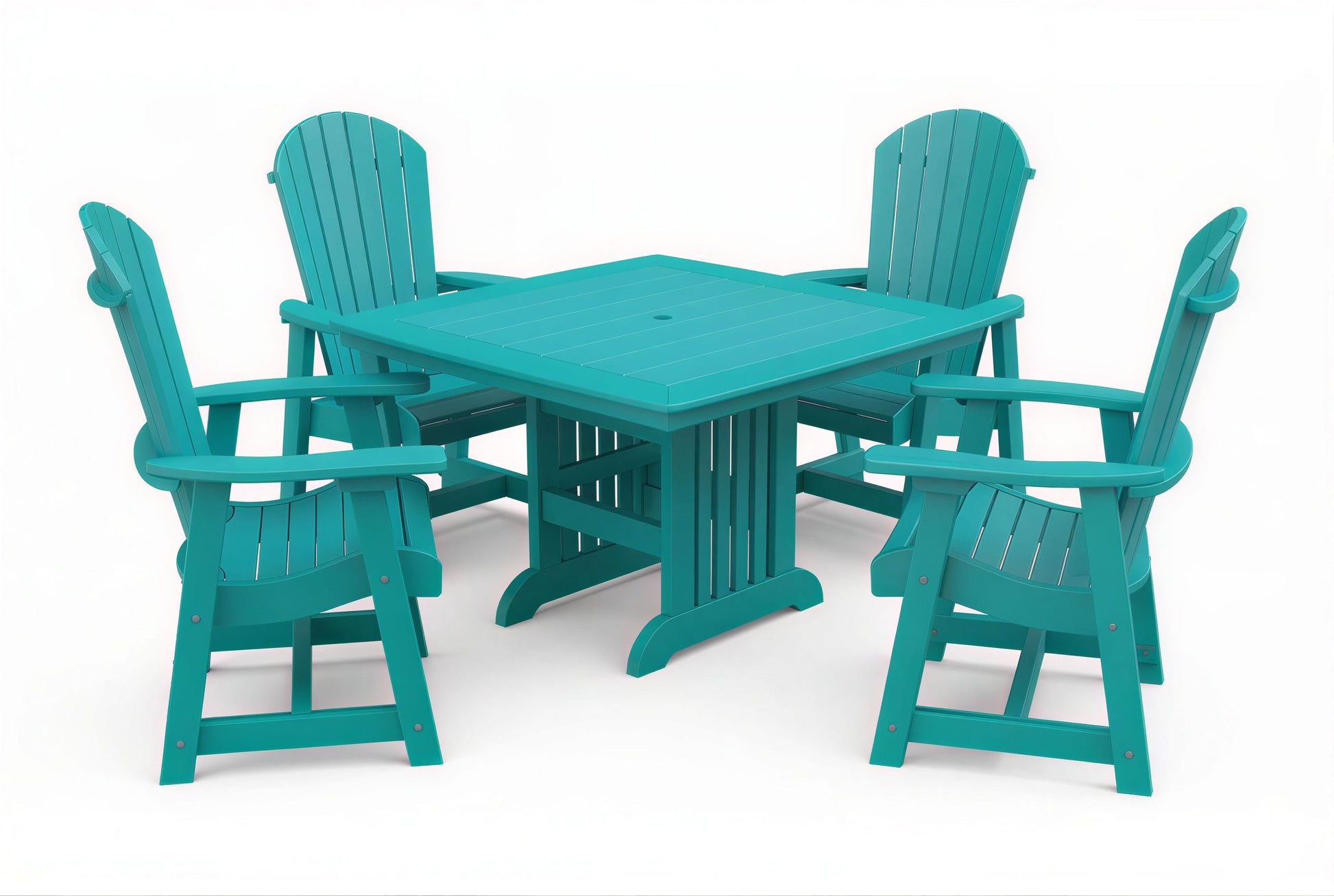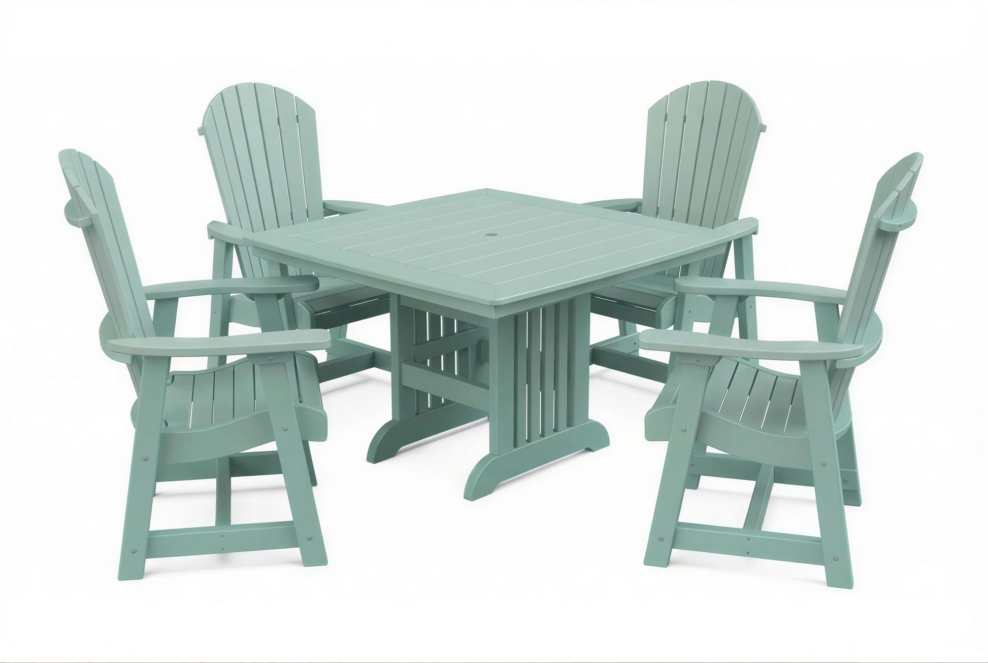 The poly Mission Table & Chairs Set by Beaver Dam pairs the elegant Farmhouse table with robust ergonomically designed Empress chairs to create a coastal-inspired centerpiece for any outdoor living space. Available in both 4-person and 6-person configurations.
