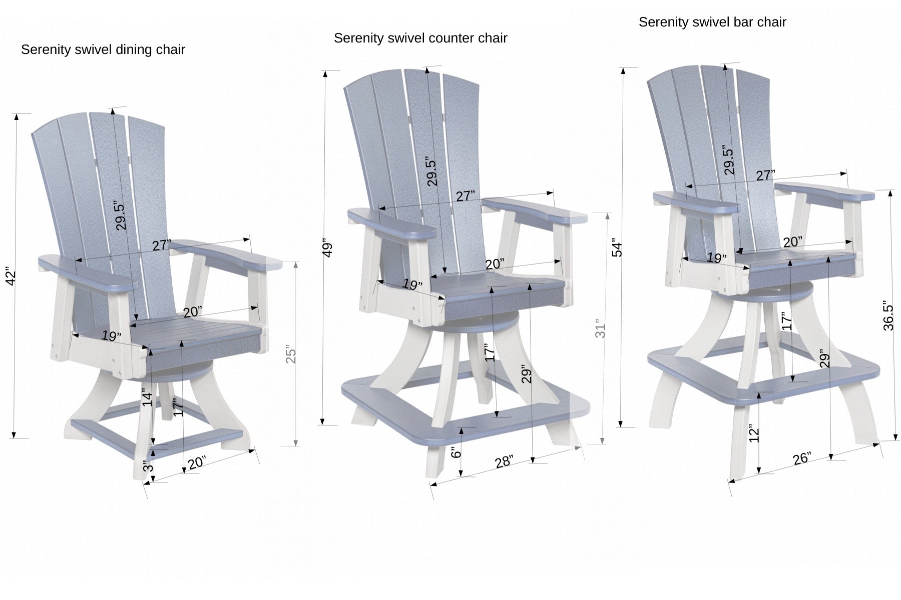 The Serenity swivel chair by Beaver Dam has an ergonomically curved seat and back. This versatile poly chair swivels 360 degrees. It is one of our most sturdy and durable chairs providing peace of mind for high wind areas.