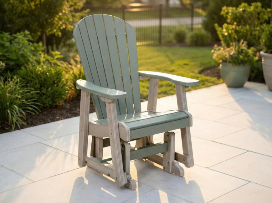 The Empress Single Glider is the epitome of form meets function. This poly glider is an improvement on the traditional rocking chair.